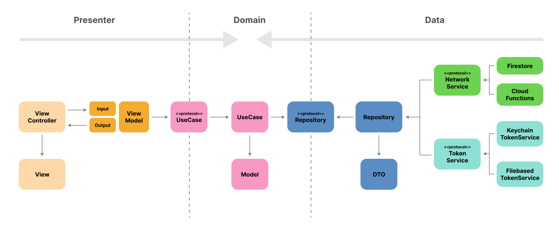 위의 사진은 저희 앱에서 적용한 아키텍쳐 구조입니다.