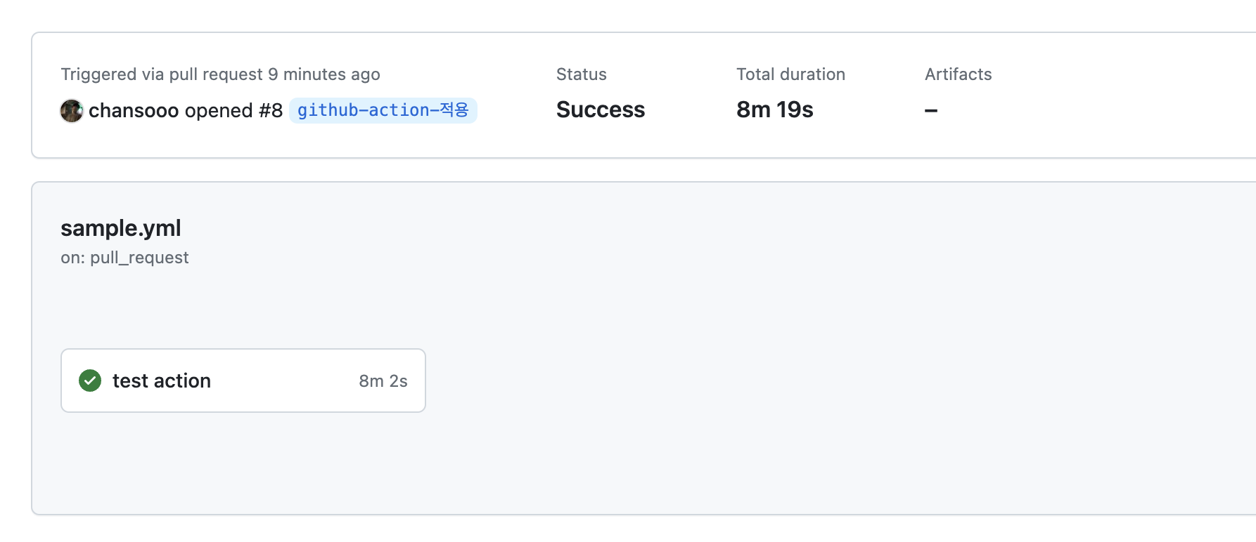 위와 같이 간단하게 main 브랜치에 pr을 날릴 때 테스트를 진행하는 action을 만들 수 있습니다.